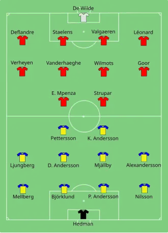 De Rode Duivels speelden op 10 juni de openingswedstrijd van het EK. In het Koning Boudewijnstadion versloeg België het Zweden van bondscoach Tommy Söderberg. Net voor en net na de rust scoorde België via respectievelijk Bart Goor en Émile Mpenza. Johan Mjällby scoorde de aansluitingstreffer na een slechte controle van doelman Filip De Wilde, maar verder kwamen de Zweden niet meer. Tegen Italië kwamen de Belgen er amper aan te pas. Francesco Totti zorgde al na 6 minuten voor een koude douche. Na het uur diepte Stefano Fiore de score uit. België had in de volgende wedstrijd voldoende aan een punt om door te stoten. Turkije profiteerde echter ook van een blunder van De Wilde. De doelman verloor net voor de rust een ogenschijnlijk makkelijk luchtduel van goalgetter Hakan Şükür. Na de rust zorgde de Turkse spits ook voor de 2-0. De Wilde sloot zijn rampzalig toernooi af met een rode kaart voor het neerhalen van de doorgebroken Arif Erdem. Omdat alle wissels waren opgebruikt, mocht verdediger Eric Deflandre onder de lat gaan staan. België werd uiteindelijk derde in groep B.