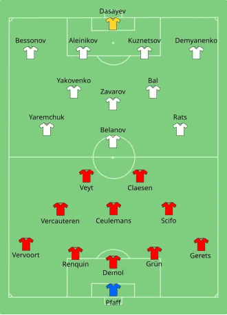 Het bleef 2-2 en dus kwamen er verlengingen. Verdediger Stéphane Demol rukte mee op en bracht de Belgen met een harde kopbal voor het eerst op voorsprong. De Rode Duivels waren ontketend. Nico Claesen haalde in de tweede verlenging hard uit, zijn vluchtschot was onhoudbaar voor doelman Dasajev. Belanov vervolledigde vervolgens zijn hattrick van op de stip, maar een gelijkmaker viel er niet meer uit de lucht. Het werd 3-4 en België mocht naar de kwartfinale.