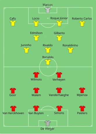 België begon op 2 september 2000 in groep 6 aan de kwalificatie voor het wereldkampioenschap. De Duivels raakten toen niet voorbij Kroatië, de latere groepswinnaar, het werd 0-0. Maar België verloor de aansluiting met de top niet. De twee volgende interlands werden makkelijk gewonnen. In Letland waren vier spelers trefzeker, België won makkelijk met 0-4. Nadien blikten de Rode Duivels het bescheiden San Marino in. Het werd 10-1 na onder meer een hattrick van invaller Bob Peeters. Het is bovendien de grootste zege ooit van de nationale ploeg.