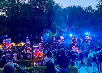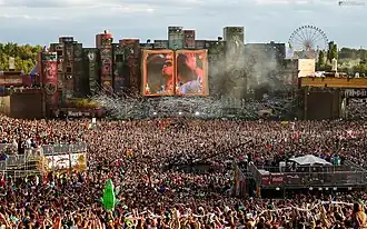 Vanaf de jaren 2000 bood EDM concurrentie aan de pop- en rockmuziek.[8] De sluiting van verschillende danceclubs leidde tot een nieuwe generatie festivals, gericht op een house-, techno- en dancepubliek. Al in de jaren 1990 stond er op Pukkelpop een dancehall, en ook Dour sprong mee op de kar van EDM. Vanaf de jaren 1990, maar vooral vanaf de jaren 2000, werden er festivals georganiseerd die deze genres volledig vertegenwoordigden, met I Love Techno (1995-2014) en Tomorrowland (2005-heden) als boegbeelden. In 1995 organiseerde Peter Decuypere van de Brusselse dancing Fuse I Love Techno voor het eerst, waarna dit uitgroeide tot het grootste dancefestival van Europa.[41] In 2015 verhuisde het festival echter definitief van Gent naar het Franse Montpellier.[46] Tomorrowland, in 2005 opgericht door de broers Manu en Michiel Beers, was bij haar vijfde editie in 2009 voor het eerst volledig uitverkocht. Zo’n 90.000 bezoekers ontdekten het Belgische DJ-duo Dimitri Vegas & Like Mike er voor het eerst.[47] In 2022 speelden zo'n achthonderd artiesten op vijftien podia gedurende drie festivalweekends met in totaal zo’n 600.000 bezoekers.[48] In 2024 was zo'n veertig procent van de bezoekers afkomstig uit het buitenland, de helft van de tickets werd weliswaar voorbehouden voor Belgen.[21] Stageco, het bedrijf dat zijn oorsprong kende op Werchter een kleine vijftig jaar eerder, bouwt de podia overigens deels op.