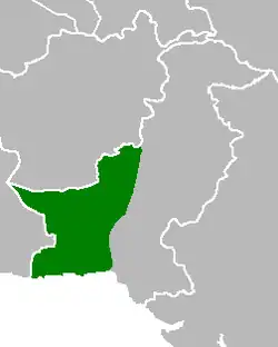 Het taalgebied van Beloetsji in Zuidwest-Pakistan