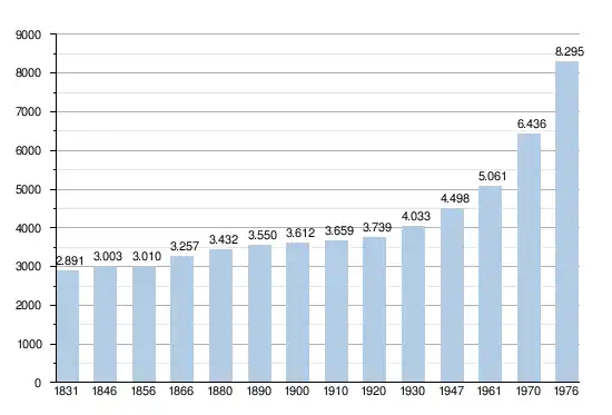 - Bronnen:NIS, Opm:1831 tot en met 1970=volkstellingen; 1976 = inwoneraantal op 31 december