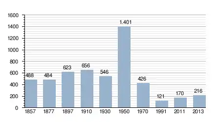 - Opm.: Het hoge bevolkingsaantal in 1950 is te verklaren door de tijdelijke huisvesting van arbeiders voor de bouw van de nabijgelegen stuwdam