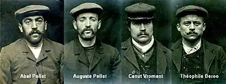 De vier bendeleden werden op 26 juni ter dood veroordeeld, ook al stond men in Frankrijk destijds op het punt de doodstraf af te schaffen. Op 11 januari 1909 werden de bendeleden per guillotine geëxecuteerd. Meer dan zesduizend mensen woonden de terechtstelling bij. Volgens een krantenartikel uit die tijd werd de orde tijdens de executie gehandhaafd door 90 gendarmes te voet, 40 gendarmes te paard en nog eens 200 cavaleristen van het leger.
