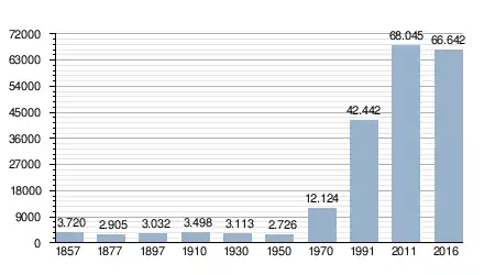 - Bron: INE; 1857-2016: volkstellingen