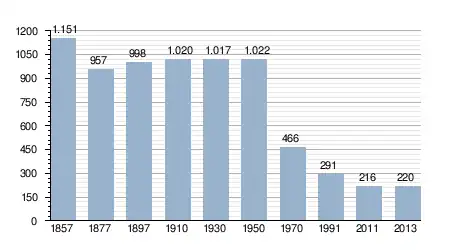 - Bron: INE, 1857-2011: volkstellingen