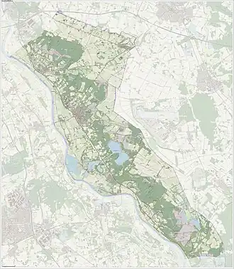 | Gemeentegrenzen Wijkgrenzen Buurtgrenzen Autosnelweg Secundaire weg Spoorweg | ██ Geselecteerde gemeente ██ Bebouwd gebied ██ Bos of park ██ Binnenwater, rivier of kanaal |