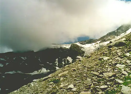Paden zijn niet met zekerheid beschikbaar. Op bepaalde plaatsen moeten de handen gebruikt worden om verder te komen. Indien gemarkeerde route: wit-blauw-wit. Terrein al behoorlijk slecht begaanbaar. Lastige grashellingen, rotsrichels, eenvoudige firnvelden (verijsde sneeuw) en sneeuwvrije gletsjerpassages. | Bekendheid met onzeker terrein. Stevige wandelschoenen. Goede terreinbeoordeling en goed oriëntatievermogen. Alpine ervaring. Bij een plotselinge weersomslag kan een terugtocht moeilijk zijn. |