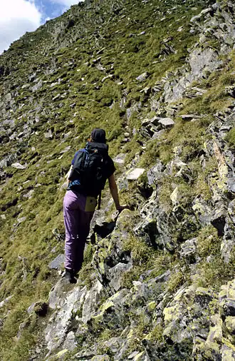 Veel bergwandelaars gebruiken 1 of 2 bergwandelstokken, die het wandelen lichter en veiliger maken, met name tijdens de afdalingen.[1][2]