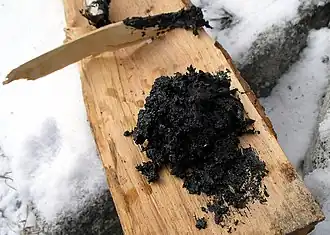 - Berkenbast in een kuil verhitten en de teer in vloeibare vorm opvangen.