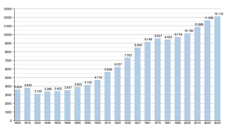 Alle historische gegevens hebben betrekking op de huidige gemeente, inclusief deelgemeenten, zoals ontstaan na de fusie van 1 januari 1977.