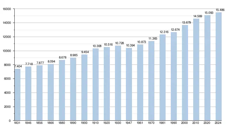 Alle historische gegevens hebben betrekking op de huidige gemeente, inclusief deelgemeenten, zoals ontstaan na de fusie van 1 januari 1977.