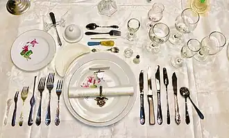 - dessertmes, dessertlepel, dessertvork (iets kleiner van formaat dan het vorige, dessertlepels zijn iets anders dan koffielepels en theelepels, want ze zijn groter);