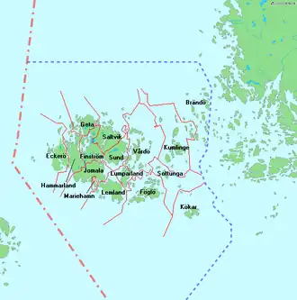 - de archipel, omvattende Brändö, Föglö, Kumlinge, Kökar, Sottunga en Vårdö.[3]