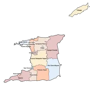 Trinidad en Tobago is bestuurlijk onderverdeeld in negen regio's en drie gemeenten (municipalities):
