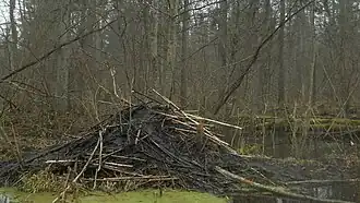 Burcht van een bever in het Woud van Białowieża (Polen)
