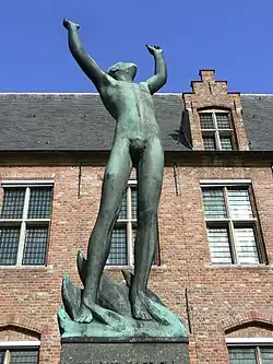 De stad Middelburg werd op 6 november 1944 door de geallieerde troepen bevrijd. In 1949 kreeg de Noordwijkse beeldhouwer Oswald Wenckebach van de gemeente de opdracht een monument te ontwerpen ter herinnering aan de bevrijding, dat zou worden geplaatst aan de Groenmarkt bij het abdijcomplex. Hij ontwierp een mansfiguur, staande in de vlammen, die zijn hoofd en handen naar de hemel heft als symbool van het Godsvertrouwen.[2] De naaktheid van de man leidde tot ophef onder de bevolking en tot vragen in de gemeenteraad. In een raadsvergadering werd besloten dat Wenckebach de man van een vijgenblad zou voorzien. Voor het opschrift op de sokkel werd een prijsvraag uitgeschreven, waarop 87 reacties binnenkwamen. De gemeenteraad koos voor een fragment uit het Wilhelmus.