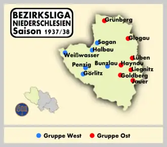 De Bezirksliga Niederschlesien 1937/38 was het vijfde voetbalkampioenschap van de Bezirksliga Niederschlesien, het tweede niveau onder de Gauliga Schlesien en een van de drie reeksen die de tweede klasse vormden. De competitie werd in twee geografisch verdeelde reeksen gespeeld, waarvan de winnaars elkaar bekampten voor de algemene titel. SSVgg Bunzlau werd kampioen en speelde de eindronde ter promotie met SpVgg Ratibor 03 en 1. FC Breslau, maar werd derde en kon dus geen promotie afdwingen.