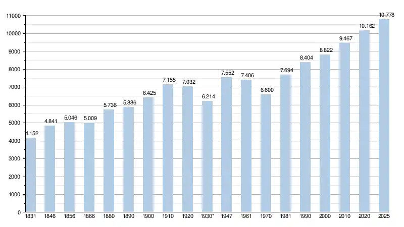 Alle historische gegevens hebben betrekking op de huidige gemeente, inclusief deelgemeenten, zoals ontstaan na de fusie van 1 januari 1977.