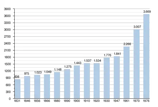 - Bronnen:NIS, Opm:1831 tot en met 1970=volkstellingen, 1976= inwonersaantal op 31 december
