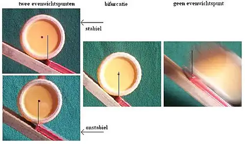 - transkritische bifurcatie waarbij twee punten van stabiliteit verwisselen.
