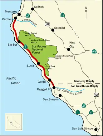 de route 1 loopt door Big Sur