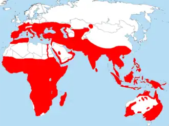 | In rood; Het verspreidingsgebied van de bijeneters. | |||||||||