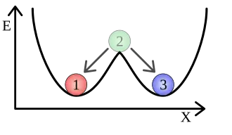 Wanneer het systeem zich in een van beide toestanden bevindt en enigszins verstoord wordt, verschuift de toestand ook enigszins. Wanneer de verstoring weer verdwijnt, keert het terug naar de oorspronkelijke stabiele toestand. Pas wanneer de verstoring van het systeem groot genoeg is, kan het de andere stabiele toestand bereiken. Als de verstoring daarna verdwijnt, blijft het in deze nieuwe stabiele toestand en keert het niet terug naar de oorspronkelijke toestand. Een tweede verstoring (meestal anders, tegengesteld gericht of anders, tegengesteld van aard) is nodig om het systeem weer naar de eerste toestand terug te schakelen.