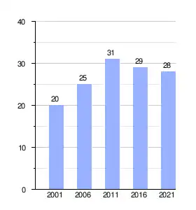 | Bron: Statistics Canada (2001–2006[9], 2011–2016[10], 2021[11]) |