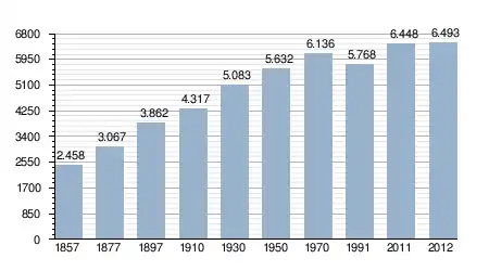- Bron: INE, 1857-2011: volkstellingen