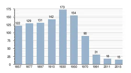 - Bron: INE, 1857-2011: volkstellingen