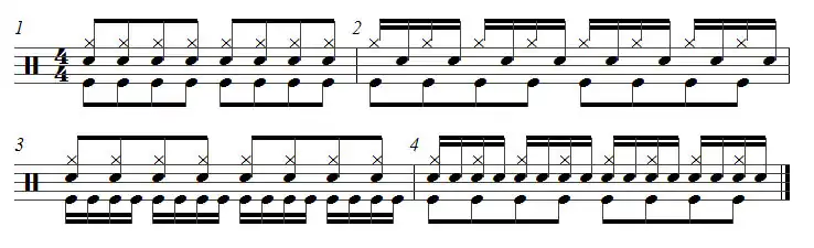Een blastbeat wordt normaal in 1/16de noot gespeeld wisselend tussen cymbaal en snaardrum, waarbij de cymbaal samen met de basdrum wordt aangeslagen. Er bestaan verschillende variaties. Zo wordt ook vaak de basdrum met één voet in 1/8ste noot gespeeld.