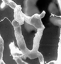 - ↑ Hashizume, H, Baluk P, Morikawa S, McLean JW, Thurston G, Roberge S, Jain RK, McDonald DM (April 2000). Openings between defective endothelial cells explain tumor vessel leakiness. American Journal of Pathology 156 (4): 1363–1380. PMID 10751361. PMC 1876882.