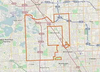 - ↑ "Bloomfield Township Street Map." () Bloomfield Township, Oakland County. Retrieved on July 30, 2013.