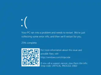In Windows 8 werd het BSoD gewijzigd. Microsoft wilde het scherm met de foutcodes vereenvoudigen voor de gebruiker en verving het daarom door een lichtblauw venster met een duidelijkere tekst. Ook werd er een emoticon toegevoegd - ':('. Hier staat enkel nog te lezen dat de pc een probleem heeft en daarom opnieuw dient te worden opgestart. Soms wordt ook gemeld dat er foutmeldingen verzameld worden en dat de herstart dan automatisch plaats zal gaan vinden, of wordt aanbevolen online te zoeken naar de fout die kan worden gemeld. Het scherm kan qua foutmelding een wisselende tekst geven.