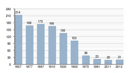 - Bron: INE, 1857-2011: volkstellingen
