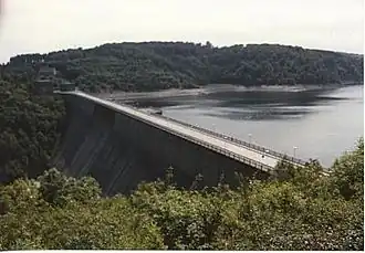 | Rappbode-Talsperre | 1952-1959 | 51° 44′ 26″ NB, 10° 53′ 48″ OL | Rappbode | 90 m | 390 ha | 109,08 milj. m³ |