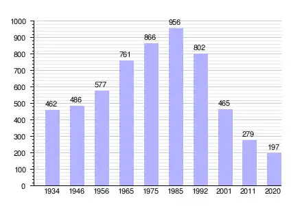 | Bevolkingsontwikkeling tussen 1934 en 2020 |