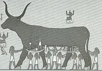 - Dit artikel of een eerdere versie ervan is een (gedeeltelijke) vertaling van het artikel Book of the Heavenly Cow op de Engelstalige Wikipedia, dat onder de licentie Creative Commons Naamsvermelding/Gelijk delen valt. Zie de bewerkingsgeschiedenis aldaar.
