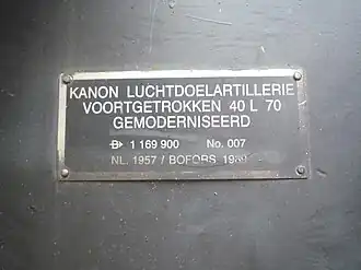 - ↑ a b W. Klinkert, R.U.M.M. Otten, J.F. Plasmans, 75 jaar Luchtdoelartillerie 1917 – 1992, uitg. Sectie Militaire Geschiedenis Koninklijke Landmacht (1992) ISBN 9789070677305