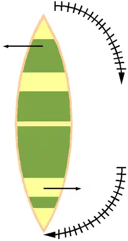 De achterwaartse boogslag is exact tegengesteld aan de hierboven beschreven voorwaartse boogslag. Door met een dubbelbladige peddel afwisselend links en rechts voorwaartse en achterwaartse boogslagen te maken is de kajak te keren op de plaats.