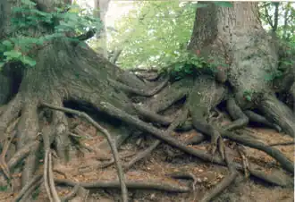 Uit het zaad wordt een hoofdwortel of penwortel gevormd. De wortels kunnen diep in de grond doordringen en zorgen voor een belangrijk deel voor de verankering van de boom. Als bodemmateriaal wegspoelt kunnen de wortels van de boom gedeeltelijk bloot komen te liggen. Sommige boomsoorten maken ook luchtwortels, zoals waringin of treurvijg (Ficus benjamina).