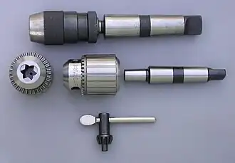 Bij deze typen wordt een boor met cilindrische schacht vastgeklemd in een houder met drie klemmen.