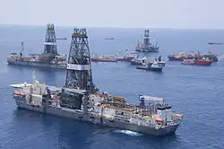 Boorschepen zijn een manier om naar olie of gas te boren op zee. Het wordt ook gedaan door halfafzinkbare platforms (semi-submersibles) en hefplatforms (jackups).