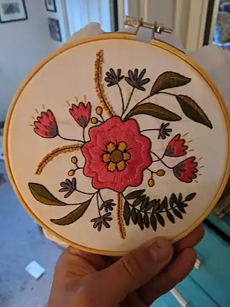 - ↑ a b Dit artikel of een eerdere versie ervan is een (gedeeltelijke) vertaling van het artikel Embroidery hoop op de Engelstalige Wikipedia, dat onder de licentie Creative Commons Naamsvermelding/Gelijk delen valt. Zie de bewerkingsgeschiedenis aldaar.