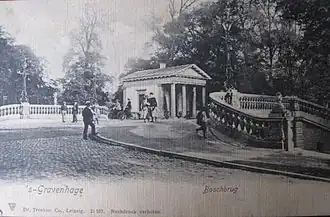 De Bosbrug in de 18e eeuw, schilderij van Jacob Elias la Fargue (1735-±1778)De Bosbrug met het Wachtje in 1914De Bosbrug tot de vernieuwing in 2013