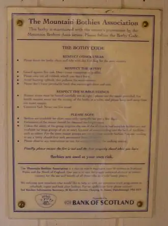 Hoewel vrij toegankelijk is het gebruik van bothies aan een aantal regels gebonden: