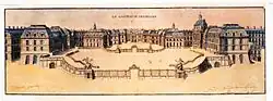 Versailles in de late jaren 70. De Noord- of edelenvleugel is gebouwd. Men bouwt aan de vleugels van de ministers. -