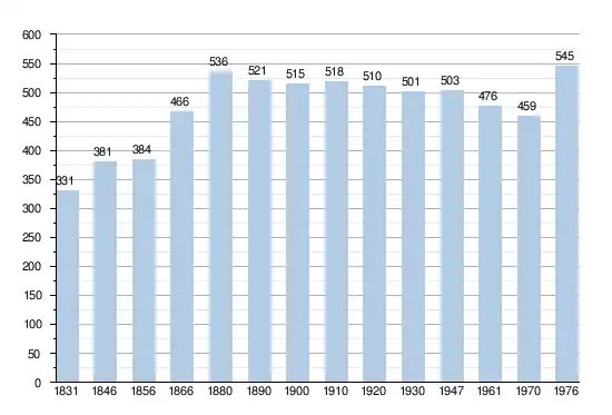 - Bronnen:NIS, Opm:1831 tot en met 1970=volkstellingen, 1976= inwoneraantal op 31 december