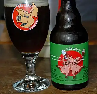 Het bier wordt sinds 2008 gebrouwen in Huisbrouwerij Den Tseut te Oosteeklo onder de naam Den Bras. Het was oorspronkelijk een donker amber bier met een alcoholpercentage van 7,5%. Vanaf juli 2012 werd het recept en de naam gewijzigd en werd het een bruin bier met een alcoholpercentage van 10%.